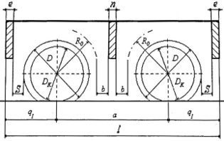 R0 = 1330 мм; S = 95 мм; b = 20 мм; n = 500 мм; e1 = 150 мм;