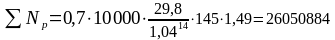 Вычисляем суммарное расчетное количество приложений расчетной нагрузки за срок службы по формуле: