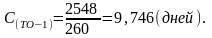 Полученное значение округляется до ближайшего целого числа - 10. Это означает, что через 10 дней эксплуатации на линии автобус будет подвергаться первому техническому обслуживанию (ТО-1). За это время автобус пройдет: