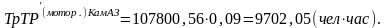 Процент, приходящийся на моторные работы, составляет 9%. Тогда годовой объем моторных работ для грузовых автомобилей марки КамАЗ-5511 будет составлять: