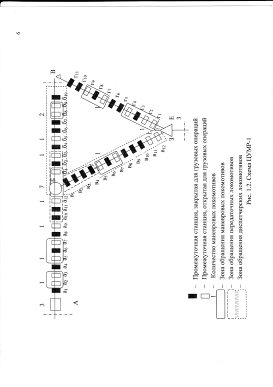 Отдельные схемы для каждого ЦУМР с указанием на участках промежуточных станций, зон обращения передаточных, диспетчерских и маневровых локомотивов, количества маневровых локомотивов на станциях приведены на рис. 1.2 и рис. 1.3.