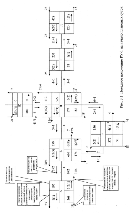 Далее составим поездное положение района управления на начало планируемых суток (рис. 3.1).