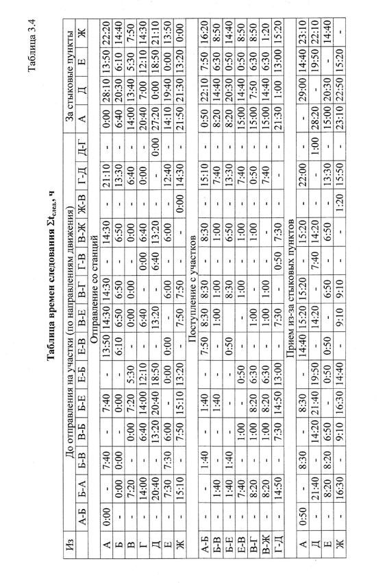Время Σtслед рассчитывается суммированием нормативов времени хода и технических стоянок в графике движения поездов. При этом учитывается стоянка на последней технической станции перед выходом на участок. Рассчитанные значения Σtслед в часах сведём в таблицу 3.4.