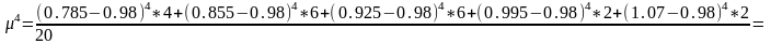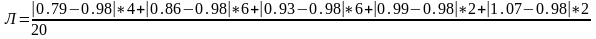 = ( 0,79 * 4 + 0,86 * 6 + 0,93 * 6 + 0,99 * 2 + 1,07 * 2) /20 = 0,98