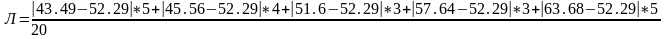 = (43,49*5 + 45,56*4 +51,6*3 + 57,64*3 + 63,68*5)/20 = 52,29