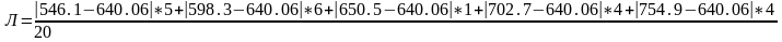 = ( 546,1 * 5 + 598,3 * 6 + 650,5 * 1 + 702,7 * 4 + 754,9 * 4) /20 = 640,06