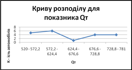 50% автомобілів мають обсяг перевезень більший за 563,5, а 50% автомобілів – менше 563,5. Показники варіації: