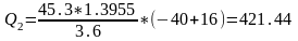 Q3=5*45,3/3,6*[1,3*(-40+14)+2,89*(0,5*10,64+0,5*1,05)=1063,92 (Вт).