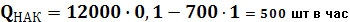 QНАК – нагрузка на операции в час наибольшей нагрузки, посылок.