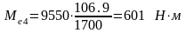 | Ме, Н м | 631.2 | 631 | 620 | 601 | 571.5 | 532 |