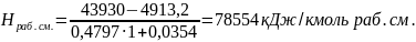 Теплота сгорания рабочей смеси, кДж/кмоль раб.см.: