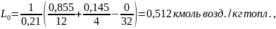 – массовые доли углерода, водорода и кислорода в одном килограмме топлива.