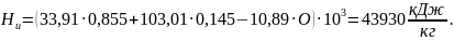 Низшая теплота сгорания жидкого топлива, кДж/кг: