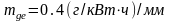 - максимальная эффективная мощность двигателя (кВт) и максимальный удельный эффективный расход топлива (г/(кВт∙ч)) при частоте вращения коленчатого вала