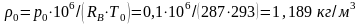 где RB = 287 Дж/кг град — удельная газовая постоянная для воздуха.