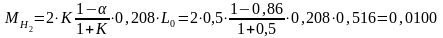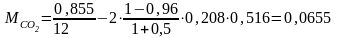 Проверка: М2 = 0,855/12 + 0,145/2 + 0,792 ∙ 0,96 ∙ 0,516 = 0,5360 кмоль пр. сг/кг топл.
