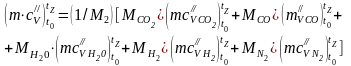=(1/0,536) [0,0655 ∙(39,123 + 0,003349tz) +0,0057∙ (22,49 + 0,00143tz) + 0,0696 (26,67 + 0,004438tz) + 0,0029 (19,678 + 0,001758tz) + 0,3923(21,951+ 0,001457tz)] = 24,656 + 0,002077tz кДж/(кмоль∙град).