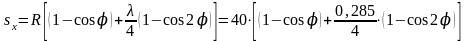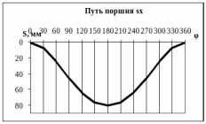 Расчет sx производится аналитически через каждые 10° угла поворота коленчатого вала. Значения для