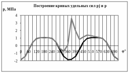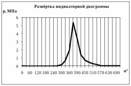 Суммирование значений крутящих моментов всех четырех цилиндров двигателя осуществляется табличным методом через каждые 10° угла поворота коленчатого вала и по полученным данным строится кривая Мкр в масштабе ММ= 10 Н·м в мм.