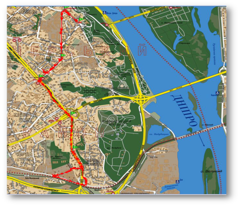 Рисунок 2.1 - Схема маршруту №777 «Залізничне шосе - вул.Суворова 1»(прямий маршрут)