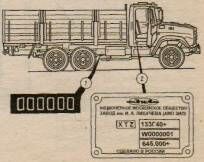 Модель, номер автомобиля и модель дизельного двигателя указаны в сводной табличке заводских данных, которая прикреплена на боковине правого дверного проема кабины.