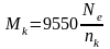 де Ne, nk – відповідно потужність двигуна, кВт и частота обертання колінчатого вала двигуна, хв–1, для вільної точки кривої;