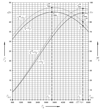 в зависимости от оборотов коленчатого вала ne определяется по внешней скоростной характеристике двигателя.