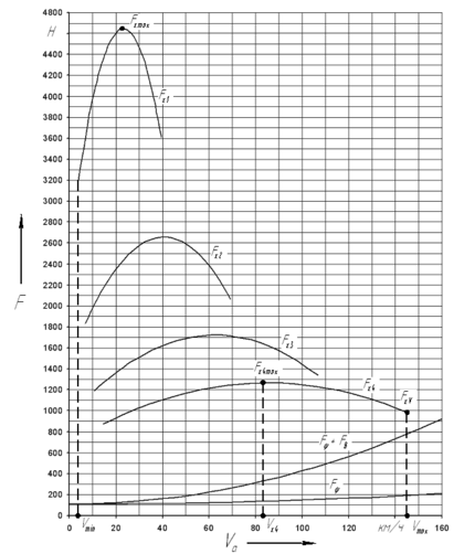 Рисунок 3.1 Тяговая характеристика автомобиля