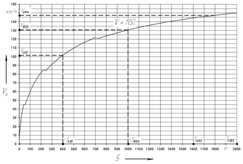 Рисунок 3.5 Скоростная характеристика пути разгона автомобиля