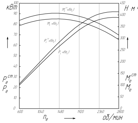 , наносятся на график внешней скоростной характеристики (рис. 2.1).