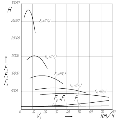 движению автомобиля строят, откладывая значения этой силы вверх от значений силы