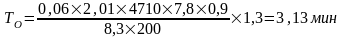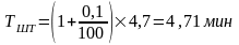 - время перерывов на отдых, мин (принимается 4–6% от оперативного времени).
