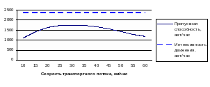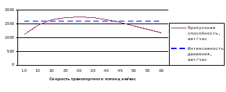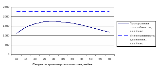 Диаграмма 1. Зависимость пропускной способности контрольного участка №1 от скорости движения транспортного потока