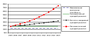 расчетно-ожидаемому сценарию - пропускная способность в пиковые часы будет исчерпана в 2007 г.
