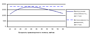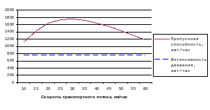 Диаграмма 3 показывает диапазон скоростей движения, при котором обеспечивается оптимум пропускной способности и безопасности движения.