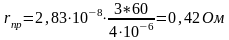 qпр - сечение проводов, которое не должно быть меньше 4 10-6 м2 для алюминия и 2,5 10-6 м2 для меди, но не более 10 10-6 м2;