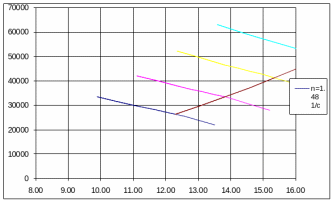 По результатам расчёта строится паспортная диаграмма ГВ, представленная на рисунке 3. На ней также строятся линии располагаемой тяги, сопротивления, требуемой мощности и кривая ограничительной характеристики