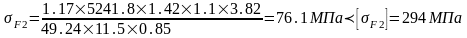 Напряжения изгиба на зубьях колеса: