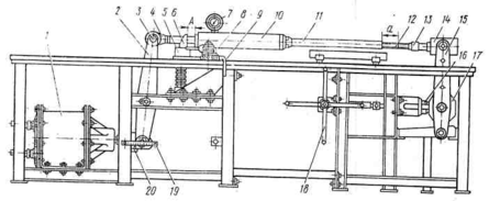 а величину выхода штока можно определить по указателю 20, закрепленному на штоке поршня тормозного цилиндра, и масштабной линейке 19, установленной на: каркасе стенда.