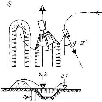 Наиболее целесообразно применять экскаватор с обратной лопатой для отрывки траншей глубиной до 6 м и небольших котлованов глубиной до 4 м (например, под фундаменты отдельных колонн).