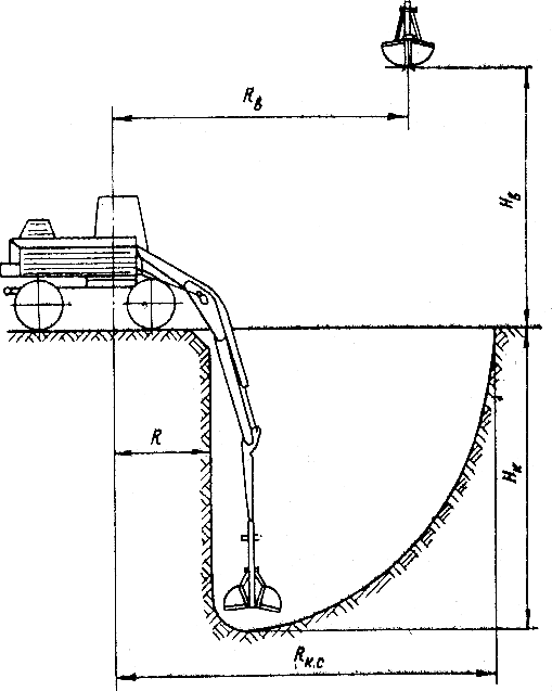 Рис.14. Схема работы экскаватора Э0-3322Б с грейферным оборудованием: