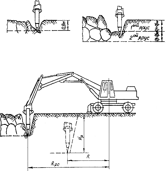 Рис.11. Схема работ экскаватора Э0-3322Б с обратной лопатой и зубом рыхлителем