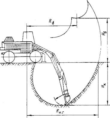 Примечание. В числителе приведены параметры выемки при минимальной ширине выемки по дну, равной ширине ковша; в знаменателе - при максимальной ширине выемки по верху, которую можно разработать экскаватором за один проход