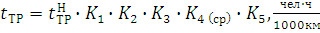- коэффициент корректирования нормативов в зависимости от модификации подвижного состава и организации его работы,