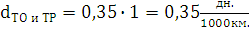 - регламентированная доля сопутствующего ремонта при проведении ТО-1 (принимается равной 0,15…0,20).