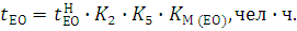 - коэффициент механизации, снижающий трудоемкость ЕО, рассчитывается по формуле: