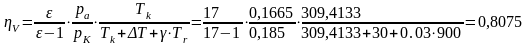 Важнейшей характеристикой процесса впуска является коэффициент наполнения ηv, который равен отношению количества свежего заряда, действительно поступившего в цилиндр, к теоретическому количеству свежего заряда, который помещается в рабочем объеме цилиндра при параметрах на впуске (Pk,Tk).