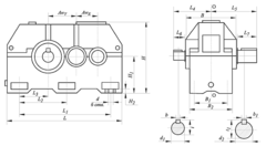 | Редуктор | b | d | d 1 | d 2 | d 3 | L | l | l 1 | Зацепление | ||||||||