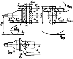 R''шкΣ = [Ry1(rк + a) — R''z1 l] / (a + b).
