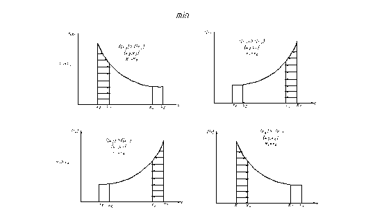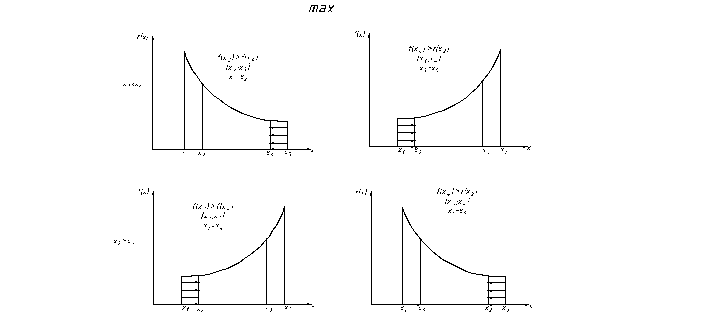 Рисунок 5.3. Четыре варианта расположения точек в интервале поиска max функции методом Фибоначчи